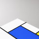 Design inspirerad av den tryckande målaren Piet Mondrian i rött, blått, gult och svart