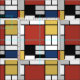 Mondrian Painting Red Flygplan Gult Black Grått Bl Tyg
