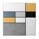 Abstrakt modern konst med färgade (marinblått, grått, svart, gult, vit) rektanglar i Mondrian stil mot vit bakgrund