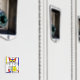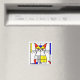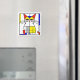 Färgfull geometrisk mondrian stil illustration av en katt med vit, gult, grått och röd kvadrat och svart linjer