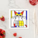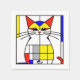 Färgfull geometrisk mondrian stil illustration av en katt med vit, gult, grått och röd kvadrat och svart linjer