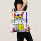 Färgfull geometrisk mondrian stil illustration av en katt med vit, gult, grått och röd kvadrat och svart linjer