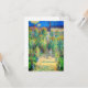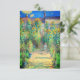 Kort med Claude Monets oljemålning Artists Garden på Vétheuil (1880). Solblommor och andra vackra blå och röda blommor i trädgården väg där barn går en trevlig promenad. En underbar gåva till fläkt av imponsionism och Fransk konst.