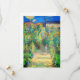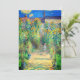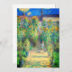 Kort med Claude Monets oljemålning Artists Garden på Vétheuil (1880). Solblommor och andra vackra blå och röda blommor i trädgården väg där barn går en trevlig promenad. En underbar gåva till fläkt av imponsionism och Fransk konst.