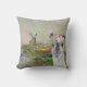 Konstnärlig dekorativ kudde har Claude Monets CHAMP TULIPES EN HOLLANDE som bakgrund med porträtt av ad,lama med vattenfärgad blommigt krona övertäckning.