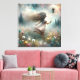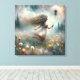 En ung flicka med blommande hår framställs genom ett fält som håller ett stort fröhuvud i Monet-konstverket stil