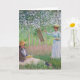 "I skogen vid Giverny" (1887) är ett andningsväckande impressionistiskt mästerverk av Claude Monet. Målningen fångar en lugn sommareftermiddag med Blanche Hoschedé som målar vid sin staffli och Suzanne Hoschedé som sitter lugnt läsande på gräset. Monet framställer på ett mästerligt sätt det förtrollande samspelet mellan det fläckvisa solljuset som filtrerar genom ett frodigt tak av vertikala träd. Den livfulla paletten av gröna nyanser och de fladdrande, rytmiska penseldragen frammanar en känsla av kreativ stillhet och naturlig harmoni. Detta klassiska konstverk firar skärningspunkten mellan konst och natur, vilket gör det till ett sofistikerat val för konstdilettanter, ateljéinredning och elegant brevpapper