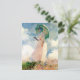 Monet kvinna med inbjudningar för en ett slags solskydd. Tempera på kanfas från 1886. En av franska ImpressionistClaude Monet mest slå studier, kvinnan med en ett slags solskydd presenterar ett härligt kvinnaanseende i en vitklänning med det röda corsageinnehav en grön ett slags solskydd som henne blåttscarfslag i den varma sommarbrisen. Flickastativen på en gräs- windswept backe med henne kjolen som blåser i vinden som molnen, passerar ljust bak henne. En nätt konstgåva för fläktar av Claude Monet, Impressionism och fransk konst.