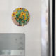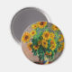 Magnet med Claude Monets oljemålning Bouquet av solblommor (1881). Fina solblommor i blå vas vid ett rött bord. En underbar gåva till fläkt av imponsionism och Fransk konst.