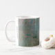 Solnedgång av Claude Monet eller te mugg. Vackra solnedgången på vatten-scenen med båtar.
