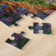 Ett Monet-blompussel med vackra rosa- och lilor i en trädgård under högt träd. En underbar Monet-gåva till fläkt av imponsionism och Fransk konst. Fantastisk natur med vackra blommor och scenlandskap.
