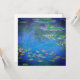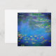 Kort med Claude Monets oljemålning Vatten Lilies (1906). Ett gott liv i samspelet mellan ljus och reflektion på vackra vatten lever fortfarande i en damm. En underbar gåva till fläkt av imponsionism och Fransk konst.