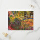 Vykort med Claude Monets oljemålning av en japansk bro och vackra blommor. Vatten liljedammen och vatten-iriserna blåste i rosa ljus. Serene natur, imponsionism med vackra blommor och scenisk dammlandskap. En underbar Monet-gåva till fläkt av imponerande och Fransk konst.