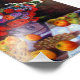 Photo Print med Claude Monets oljemålning Flowers and Fruit (1869). Fin lila, röd, blå, vit, orange och gula blommor i vas. Äpplen, druvor och andra frukter ljugit på bord. En underbar gåva till fläkt av imponsionism och Fransk konst.