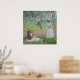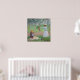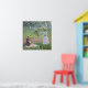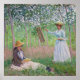 "I skogen vid Giverny" (1887) är ett andlöst impressionistiskt mästerverk av Claude Monet. Målningen fångar en lugn sommardag, med Blanche Hoschedé som målar vid sin staffli och Suzanne Hoschedé som sitter lugnt läsande på gräset. Monet framställer med mästerskap det förtrollande samspelet mellan det fläckvisa solljuset som filtrerar genom ett frodigt tak av vertikala träd. Den livfulla paletten av gröna nyanser och de fladdrande, rytmiska penseldragen frammanar en känsla av kreativ stillhet och naturlig harmoni. Detta klassiska konstverk hyllar skärningspunkten mellan konst och natur, vilket gör det till ett sofistikerat val för konstdilettanter, ateljéinredning och elegant brevpapper.