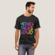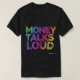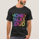 En fet t-shirt-design med frasen "Money Talks Loud" i en pulserande, flerfärgad övertoning. Brev har en något plågad struktur för en förslitande känsla av vintage.