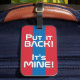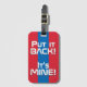 Mongoliets nationella Flagga Funny Patriotic Luggage Tag med Mongoliets nationella färg som täcker framsidan av märkrn. Lustigt text "Sätt tillbaka det!" Det är MINE" är skrivet över flagga färg. Anpassadet Text är fullt ut med funktionen "Anpassa den!". Andra sidan av märkrn är reserverad för din information. Den här roligten är Mongoliet Luggage Tag-numret som är perfektens följeslagare till din resväska och den vackra gåvan till vilken tillfälle som helst. © 2023 LänderAvVärlden