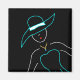 En roligt skisserar teckning på en sassisk ung kvinna i en modefärdig blå hatt och klänning. Gör det till en unik magnet och en underbar gåva till dem som har kärlek för mode och ett högt samhälle.