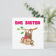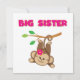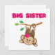 En söt apa med en rosa blomma som hon svingar av svan från en gren och rosa text lyder "Big Sister" på storasyster T-shirts, nyckelringar, kort, klistermärken, tote bags, magneter, munspadar, kuddar och andra storasysterkläder och -gåvor!