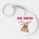 En söt apa med en rosa blomma som hon svingar av svan från en gren och rosa text lyder "Big Sister" på storasyster T-shirts, nyckelringar, kort, klistermärken, tote bags, magneter, munspadar, kuddar och andra storasysterkläder och -gåvor!