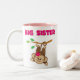 En söt apa med en rosa blomma som hon svingar av svan från en gren och rosa text lyder "Big Sister" på storasyster T-shirts, nyckelringar, kort, klistermärken, tote bags, magneter, munspadar, kuddar och andra storasysterkläder och -gåvor!