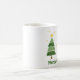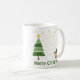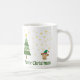 Cute apa med en grönt och en röd julhatt bredvid ett Julgran på en stjärnkväll. God Jul!