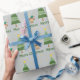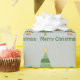 Cute apa med en grönt och en röd julhatt bredvid Julgran på en stjärnkväll. God Jul!