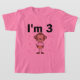 En söt apa som håller en rosa cupkaka och text som visar att jag är tre på treårsdagen T-tröjor, kroppsdräkter, mugg, kort, klistermärken, magneter och annat apeltema 3:e födelsedagskalkyl och gåvor som kan användas under hela det tredje året!