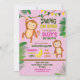 Monkey Party Birthday Swing over Girl Rosa Inbjudningar