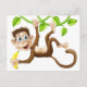 Monkey swinging with banan vykort