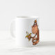 En mionkey sitta som har ett redo att äta. Den här designen ser ut att gälla i Mugg