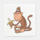 En mionkey sitta som har ett redo att äta. Den här designen ser ut att ha verkligen på den här Pappra servetten