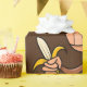 En mionkey sitta som har ett redo att äta. Den här designen ser ut att ha verkligen på den här Pappra för radbyte