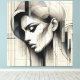 An abstract portrait in monochrome tones, combining lines, shapes, and subtle shading to create a modern, sculptural composition. The graphic structure and calm color palette give the artwork a timeless elegance. Perfect as a premium canvas for minimalist, contemporary interiors.