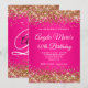 Monogram 40 födelsedagar guld Glitter Shock rosa Inbjudningar