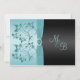 Monogram Akvamarinfärgad, Svart Blommig Bröllopsin Inbjudningar