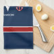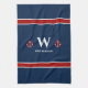 Monogram Anchor Nautical Rött vitt blått Rand Kökshandduk