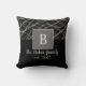 Monogram anpassningsbar-kudde grått och svart abstrakt design med text som anpassar sig för unik hemdekoration. Original abstrakt art copyright Ann Powell alla höger reserverade.