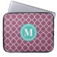 Monogram Aqua Blue Lila Quatrefoil Mönster Laptop Sleeve