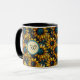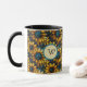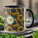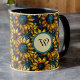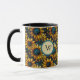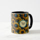 Monogram av fastfärgat glas i guld och teal solros mugg