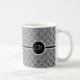 Monogram Celtic Knot Mönster-kaffe Mugg. Novel-versionen av en keltisk knut, vriden och snurkad i ett upprepande mönster i svartvitt. Med ett svart och vitt vågrät och en cirkel som innehåller ditt anpassade monogram. Byt enkelt till ditt eget brev med hjälp av länken Personalize (Anpassa).