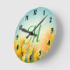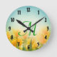 Sol kyssade gult tulips prairie fält land, meadow Monogram Initial Wall Clock Personlig