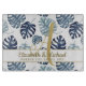 Lägg till det nya " herr" och fru " efternamn", det första " monogrammet", det första " namn" och datumet för deras bröllop", giftermål-ceremoni på eleganten, guld monogram, temat " minnesgåva till bröllop". Vattenfärgsflottan, azure blue tropical handflatan löv mönster finns i bakgrunden, med guld stil typografi för ordalydelsen.