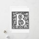 Monogram B Initial Svart och Vit Blommig Mönster Julkort