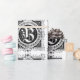 Monogram B Inledande papper för svart och vit kvadrat-medaljon i Mönster kan anpassas med en bild, namn, text, logotyp eller foto. Byt vit bakgrund till en blå nyans, grönt, gult, orange, rosa, röd, brun och lila. Underbar för att stänga jul-, födelsedag-, babydusch- eller bröllopsgåvor.