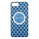 Ett söt, klassiskt blått och modernt mobilfodral i personligen med en quatrefoil mönster i bakgrunden. Lägg till ditt monogram och namn. Designad av Blackberry Boulevard.