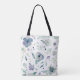 Monogram Blå Violett Akvarell Blommönster Tygkasse