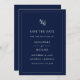 Monogram - blå vit Elegant Modern Bröllop Spara Datumet