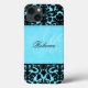 Ett modernt svart- och akvblått dammmönster i Fodral-Mate Barely With™ iPad Air fodral kan anpassas med logotyp, namn, ursprungstext eller annan text. Om du behöver hjälp kan du skicka e-post till niteowlstudio@gmail.com.