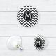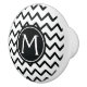 En modern keramisk knopp med en chevron zigzag mönster i tidlös svart och vit rand, som tillför en liten klassisk elegans till vilket skåp eller möbler som helst biet. Förbättra individualiteten genom att anpassa din knapp med din egen initiala åtgärd.